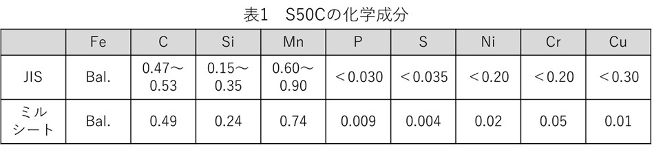 表1 SCM440の化学成分(参考情報) 単位:mass%