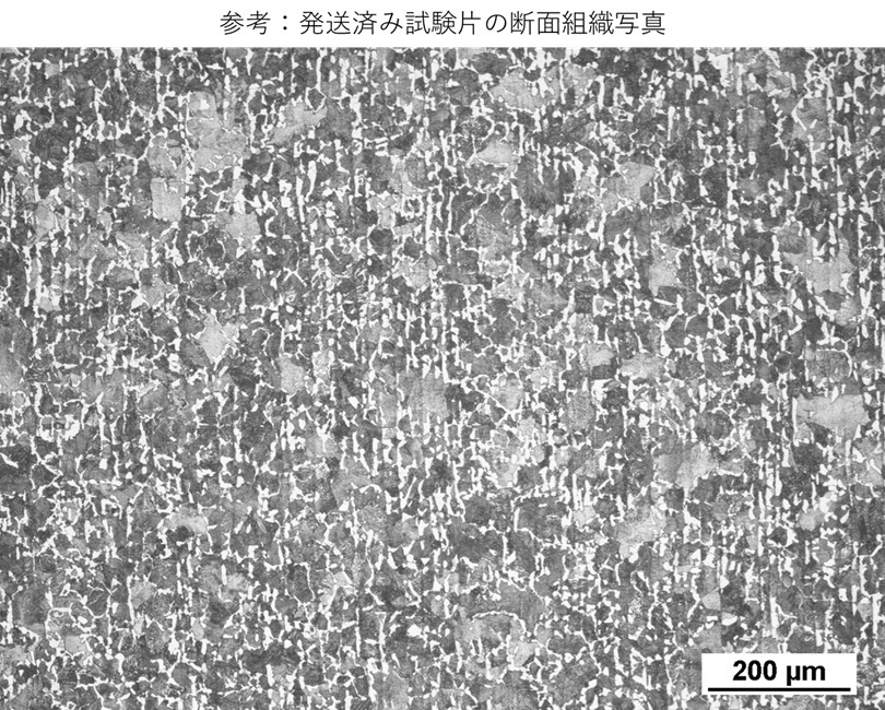 参考情報として、試験片のミルシートと組織を記載いたします。